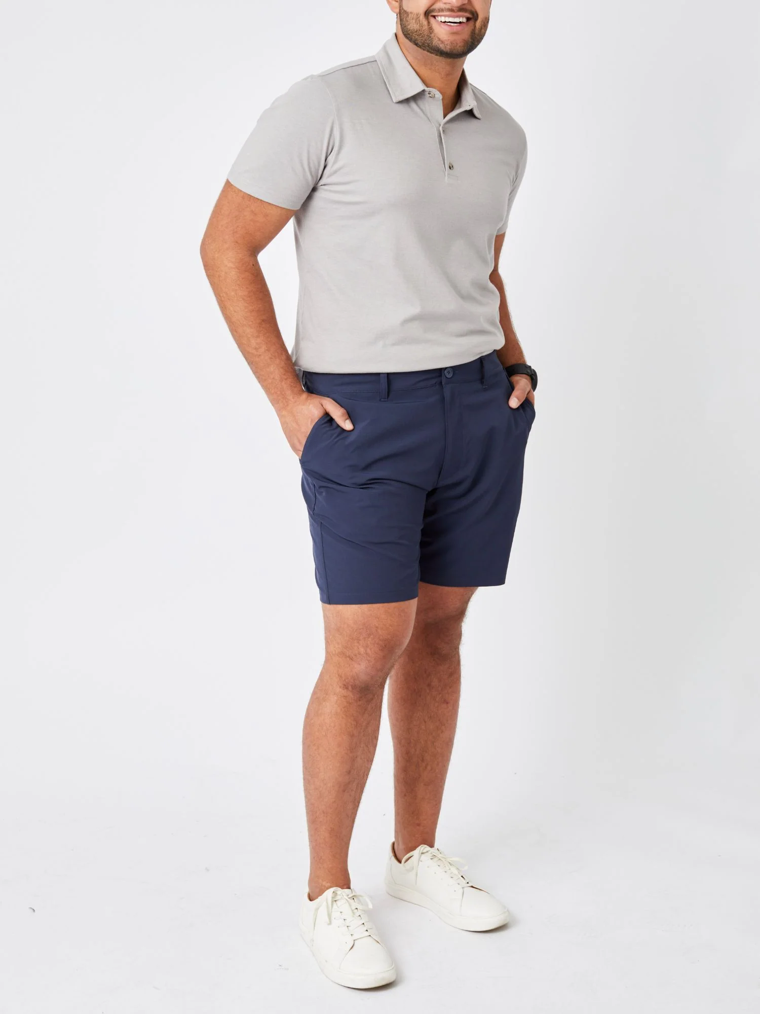 Unleash affordable comfort and unparalleled style with our Navy Everyday Short, designed exclusively for the modern man on the move. With its timeless classic fit, cutting-edge 4-way stretch, and moisture-wicking fabric, conquer scorching summer days in complete coolness and confidence.