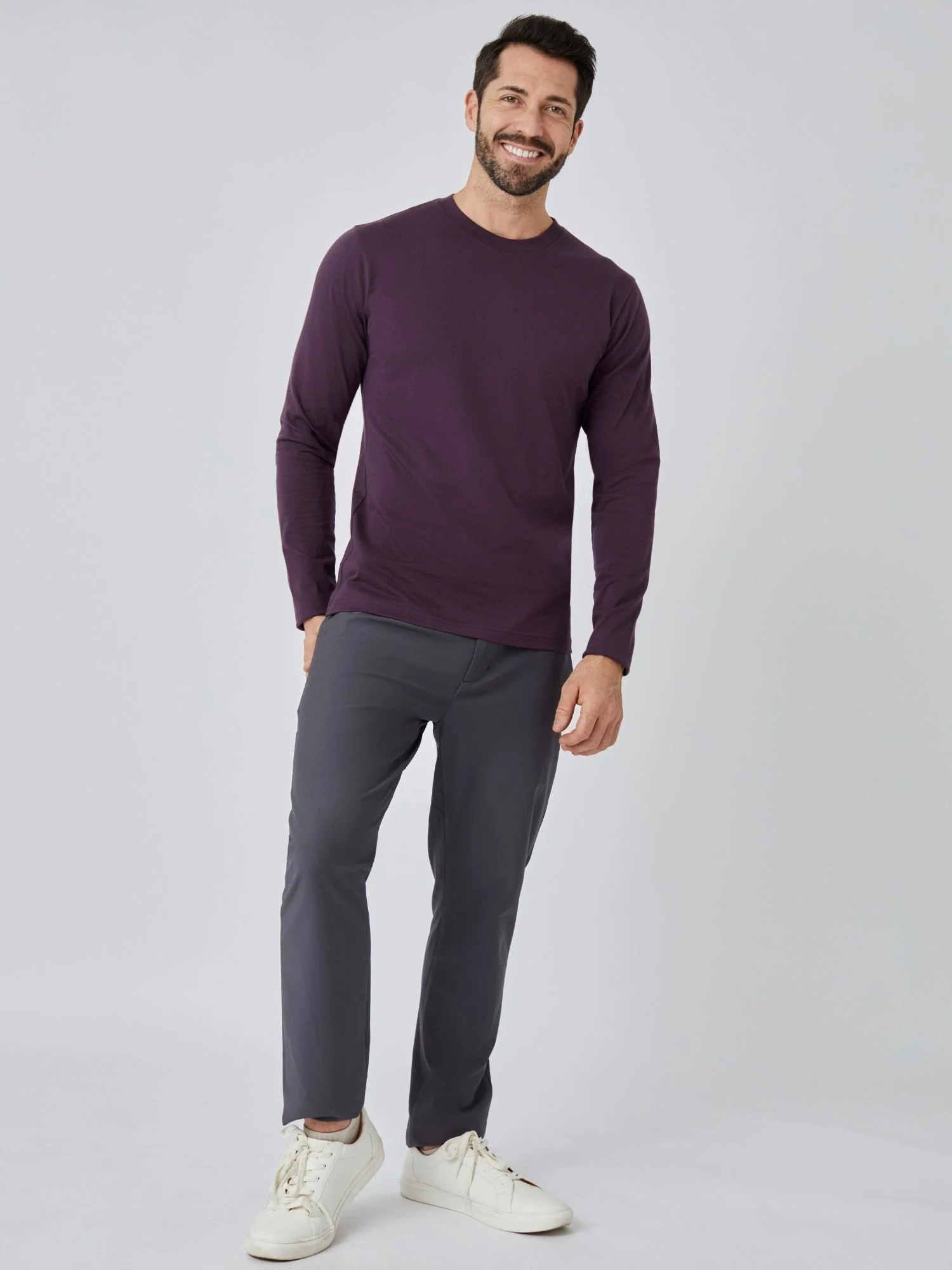 The Nordic Purple Long Sleeve Crew is a sleek and functional base layer that adds a pop of color to your winter wardrobe. This essential long sleeve tee is perfect for effortless layering beneath sweaters or jackets, or it can stand alone for a casual, cozy look. And of course, let's not underestimate the impact of its vibrant purple hue – it's bound to brighten your mood and your outfit!